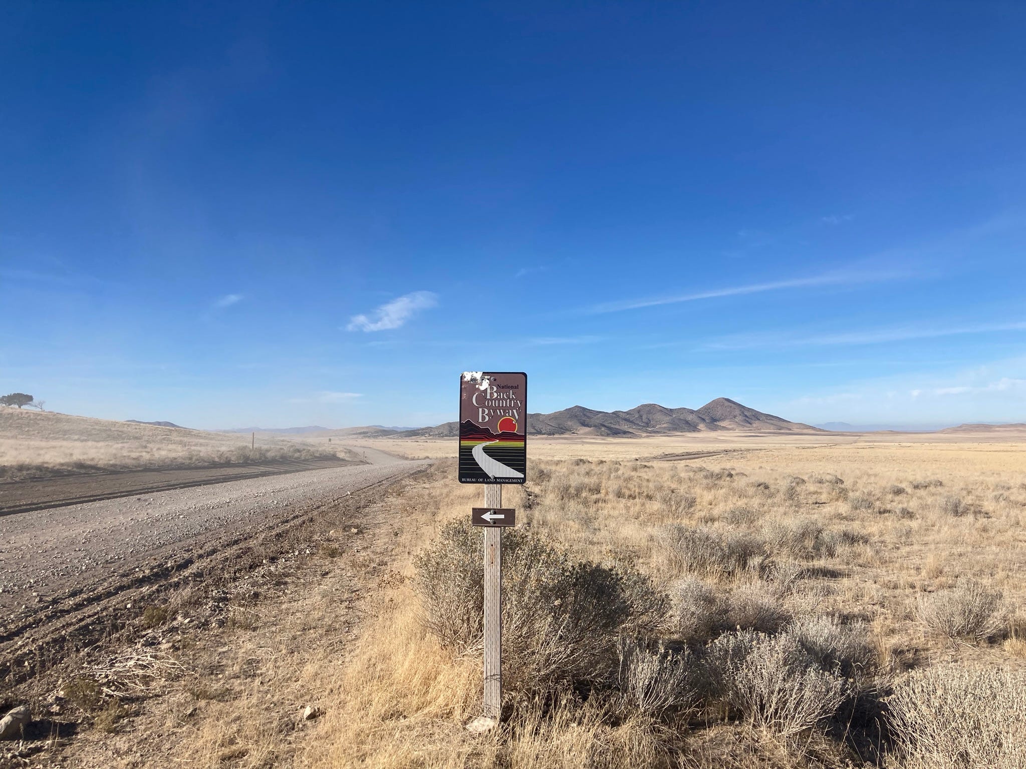 Drop down the first hill as the terrain opens up, moving from twisty pass road to wide-open, horizon-defying lines in front of you. For a moment you’ll join, then leave Simpson Springs Road, noting the National Backcountry Scenic Byway signs. Don’t worry- you’ll be on roads that are more “byway” than anything with a sign.
